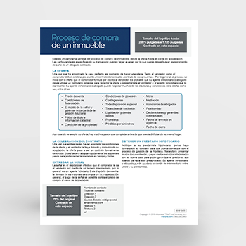Este es un panorama general del proceso de compra de inmuebles, desde la oferta hasta el cierre de la operación. Las particularidades específicas de su transacción pueden llegar a variar, por lo que quizás desee buscar asesoramiento de parte de un abogado calificado.